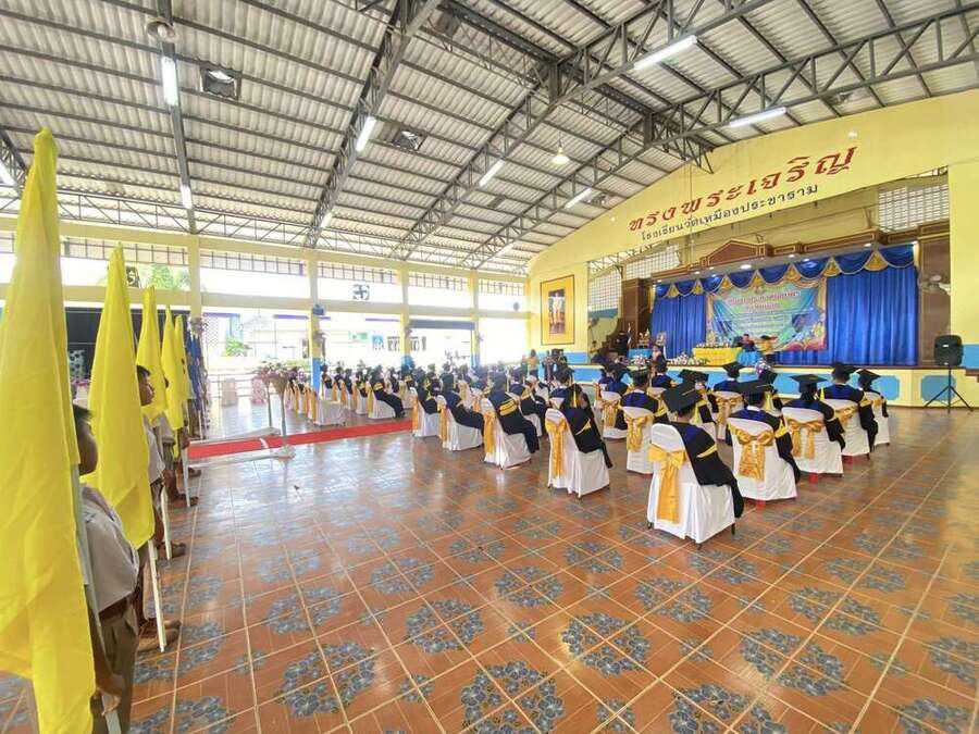 โรงเรียนวัดเหมืองประชาราม นำโดยนายไกรศร ไชยเทพ ผู้อำนวยการโรงเรียน นางปรีญา ทองสีนุ่น รองผู้อำนวยการ และคณะครู ได้จัดพิธีมอบประกาศนียบัตร และปัจฉิมนิเทศนักเรียน ที่สำเร็จการศึกษาหลักสูตรปฐมวัยและระดับชั้นประถมศึกษาปีที่ 6 ประจำปีการศึกษา 2565 S:0