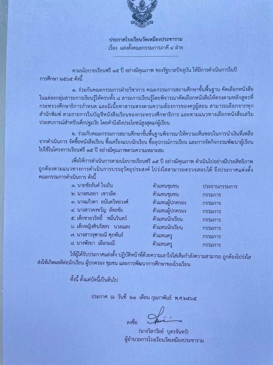 ประกาศโรงเรียนวัดเหมืองประชาราม เรื่อง ประกาศผู้ชนะการเสนอราคา ซื้อหนังสือเรียน ประจำปีการศึกษา ๒๕๖๕ โรงเรียนวัดเหมืองประชาราม โดยวิธีเฉพาะเจาะจง