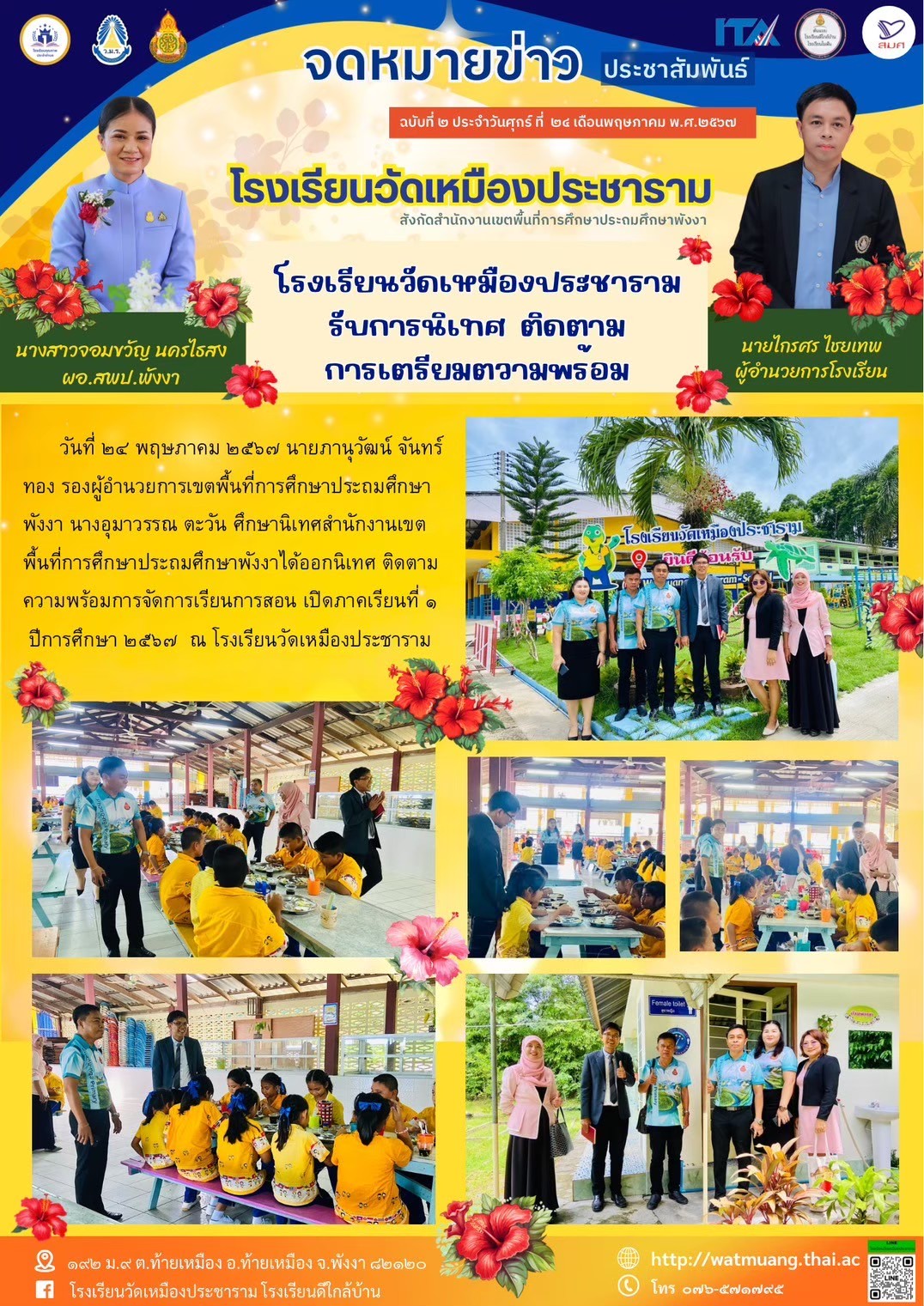 จดหมายข่าวประชาสัมพันธ์ ฉบับ ที่ 2 ปีการศึกษา 2567 โรงเรียนวัดเหมืองประชารามรับการนิเทศ ติดตาม การเตรียมความพร้อม
