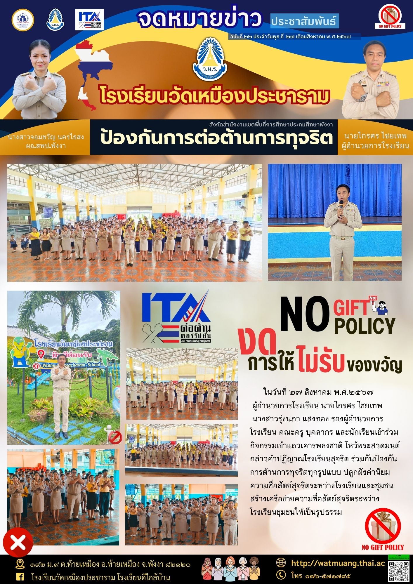 จดหมายข่าวประชาสัมพันธ์ ฉบับ ที่ 22 ปีการศึกษา 2567 ป้องกันการต่อต้านทุจริต
