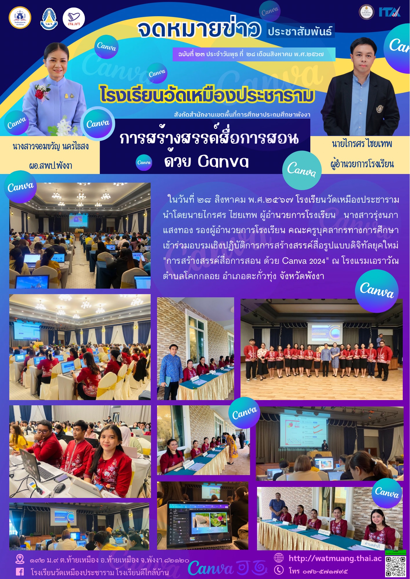 จดหมายข่าวประชาสัมพันธ์ ฉบับ ที่ 23 การสร้างสรรค์สื่อการสอนด้วย CANVA