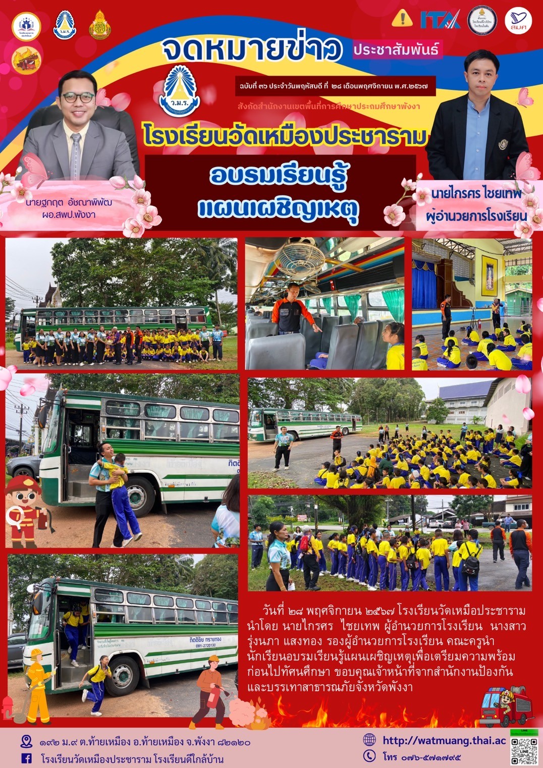 จดหมายข่าวประชาสัมพันธ์ ฉบับที่ 36 ประจำปีการศึกษา 2567 อบรมเรียนรู้แผนเผชิญเหตุ