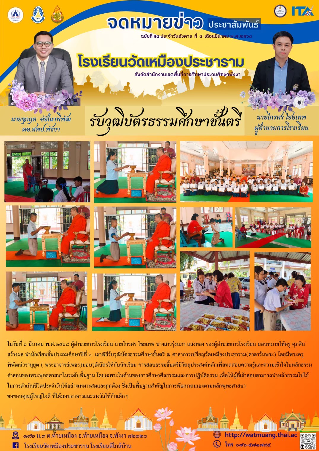 จดหมายข่าวประชาสัมพันธ์ ฉบับที่ 58 ประจำปีการศึกษา 2567 รับวุฒิบัตรรรมศึกษาชั้นตรี