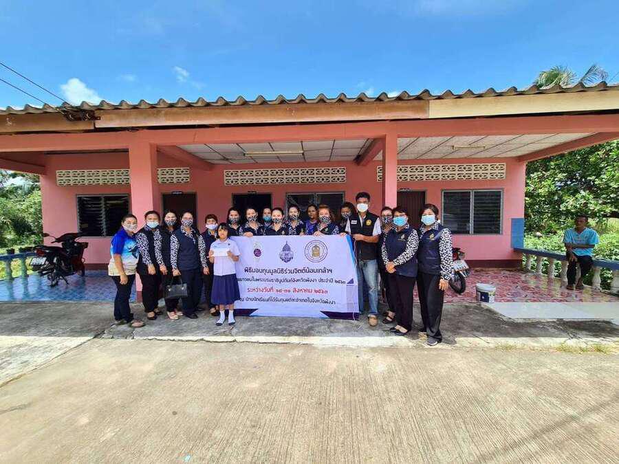 เมื่อวันที่ 18 สิงหาคม 2563 ชมรมแม่บ้านมหาดไทยจังหวัดพังงาได้ลงพื้นที่เยี่ยมบ้านนักเรียนที่ได้รับทุนมูลนิธิร่วมจิตต์น้อมเกล้าฯ เพื่อมอบทุนการศึกษาและสิ่งของช่วยเหลือ S:0