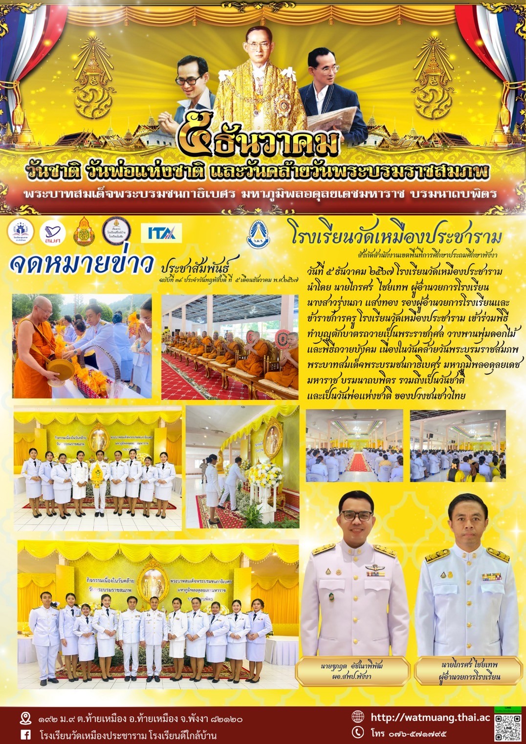 จดหมายข่าวประชาสัมพันธ์ ฉบับที่ 39 ประจำปีการศึกษา 2567 5 ธันวาคม วันชาติ วันพ่อแห่งชาติ และวันคล้ายวันพระบรมราชสมภพ